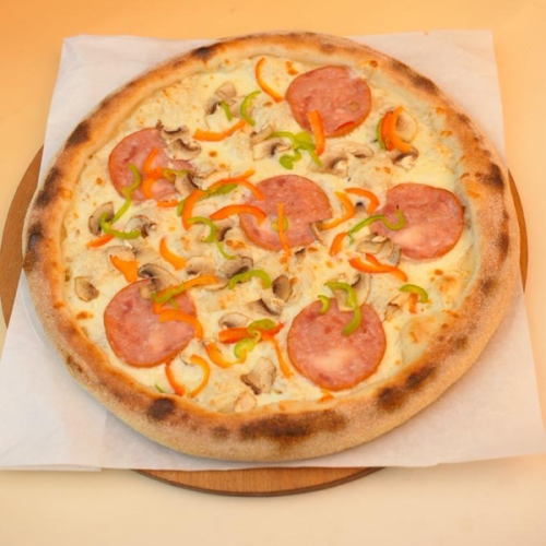 Ветчина куриная,шампиньоны,сыр,соус томатный