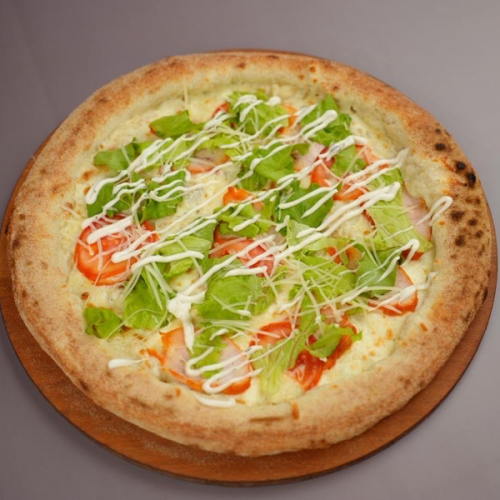 Соус сливочный,курица,помидоры,лист салата,соус цезарь,пармезан