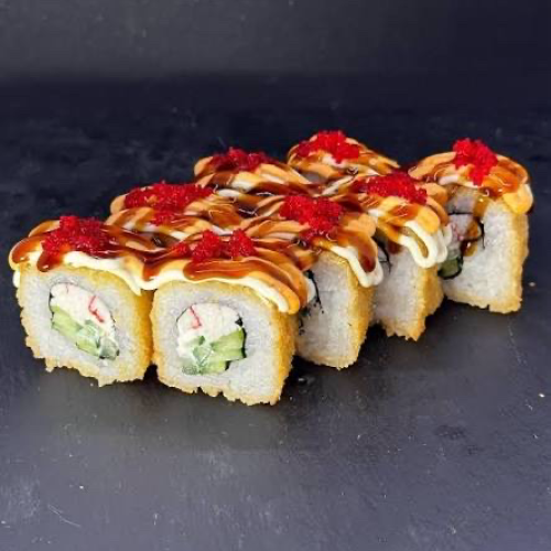 Креветка в панировке,сыр,нори,рис,соус унаги,шик соус